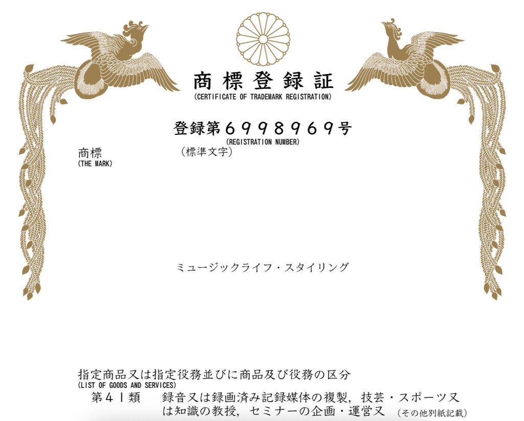 2025年12月、「ミュージックライフ・スタイリング®」「Music Life Styling®」の商標登録が完了しました。